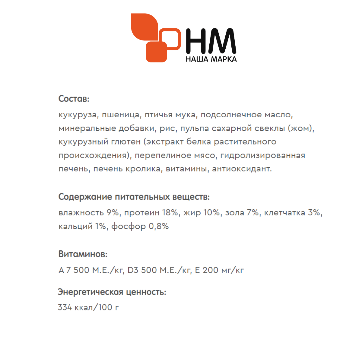 Наша Марка 18кг (д/взрослых) кролик+перепел сухой д/собак