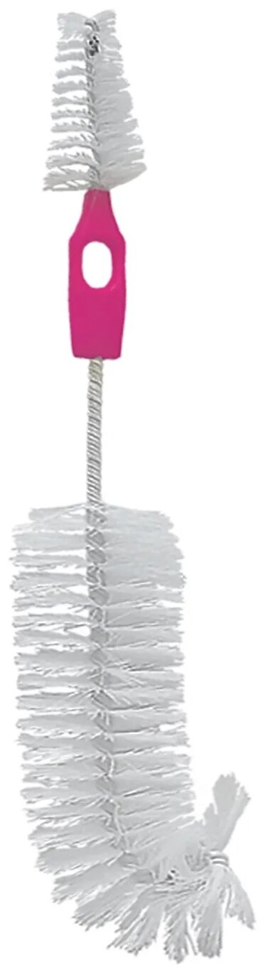 Lubby ершик для бутылочек и сосок "Двусторонний гнутый", розовый/белый