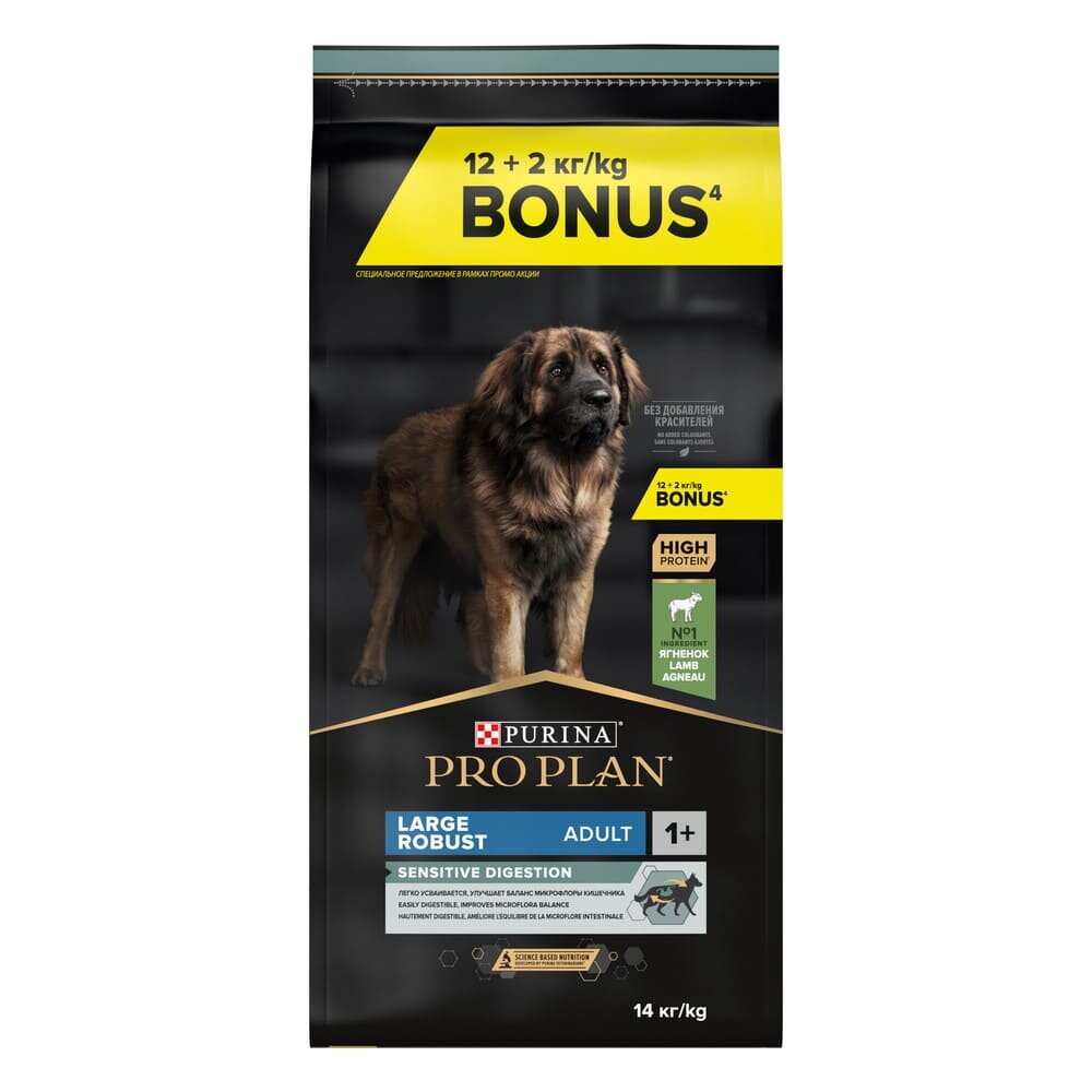 PRO PLAN ADULT DOG LARGE ROBUST SENSITIVE DIGESTION для взрослых собак крупных пород мощного телосложения с чувствительным пищеварением с ягненком (14 + 14 кг)