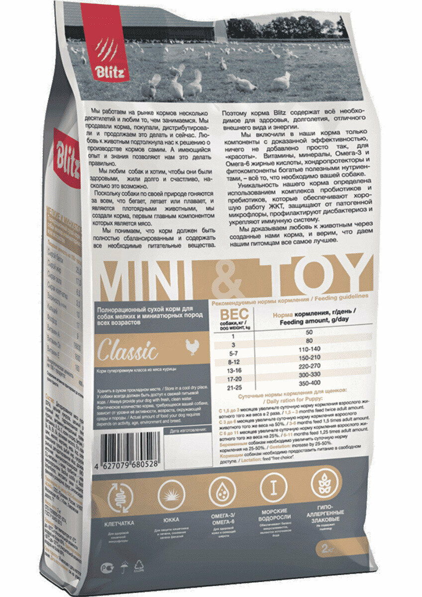 Blitz Classic Mini & Toy Breeds Dog All Life Stages для собак мелких и миниатюрных пород всех возрастов, курица 2 кг
