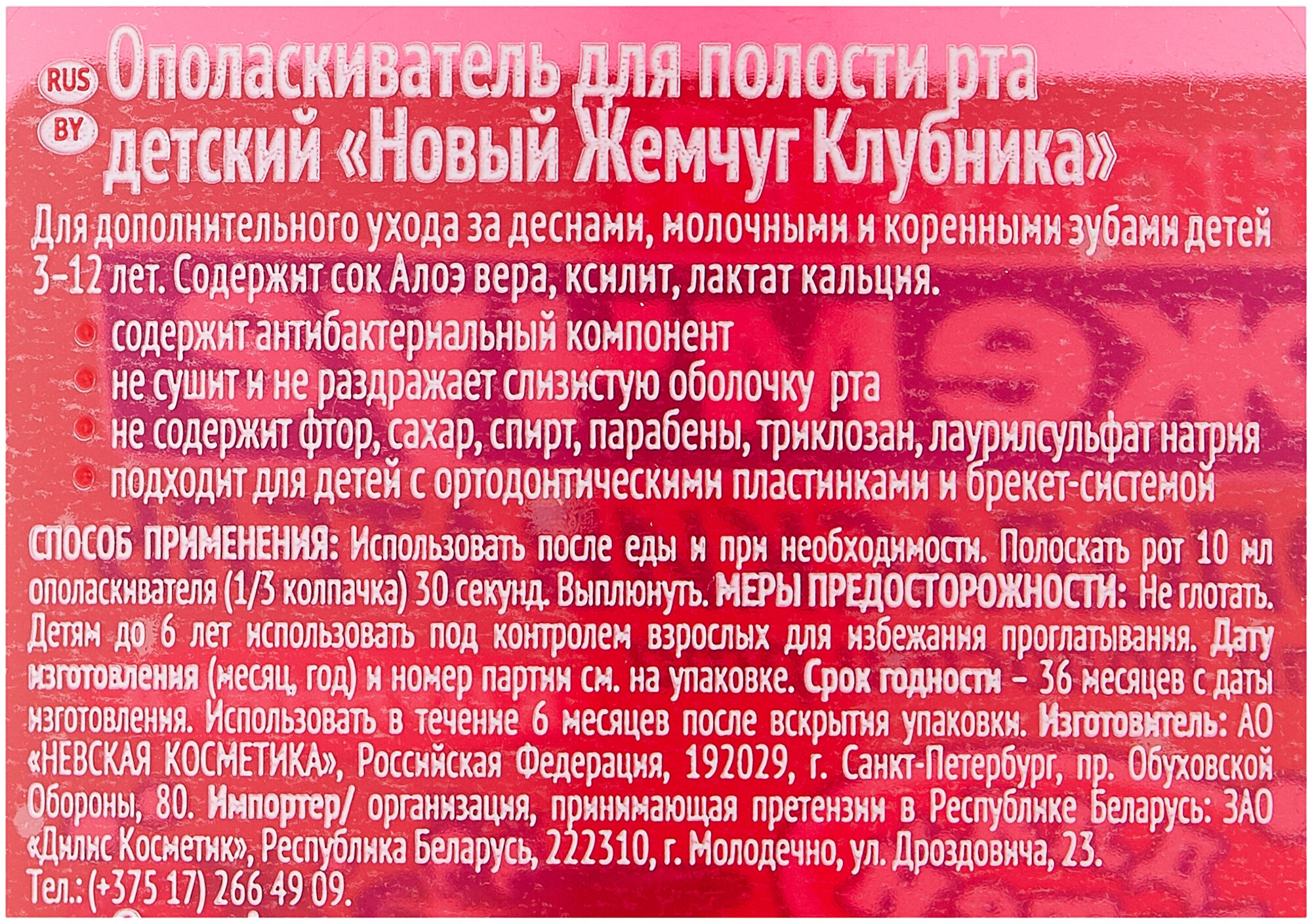Ополаскиватель Новый Жемчуг Клубника от 3 до 12 лет, 250 мл