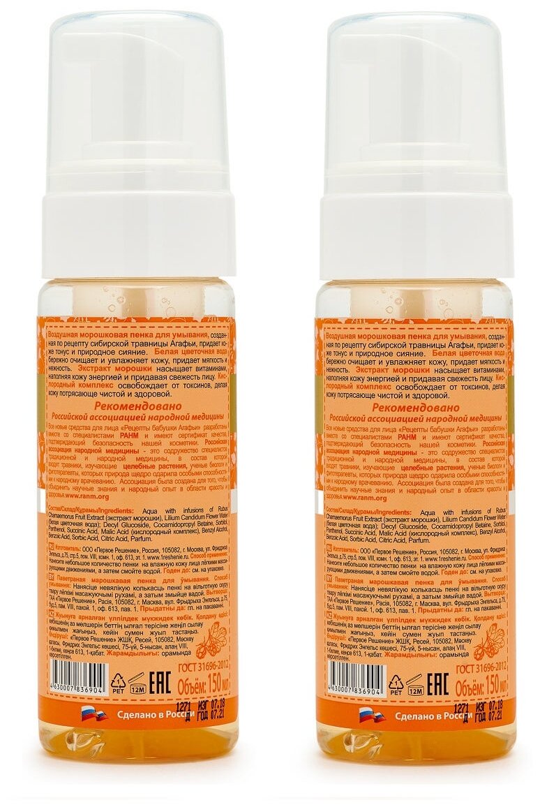 Пенка для умывания Рецепты бабушки Агафьи Воздушная Морошковая, 150мл х 1шт