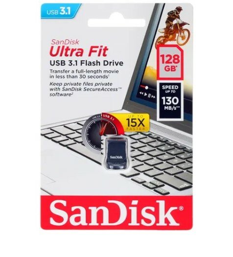 Флеш-карта SanDisk Ultra Fit, 128 гб, USB 3,1 G1, черная (SDCZ430-128G-G46)