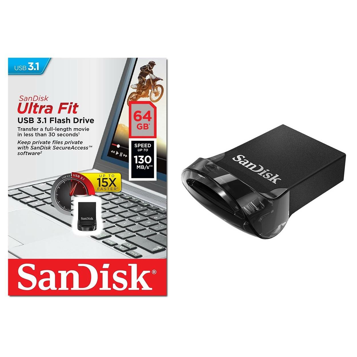 Флеш-накопитель SanDisk Ultra Fit, 64 Гб - Small Form Factor Plug & Stay Hi-Speed USB Drive