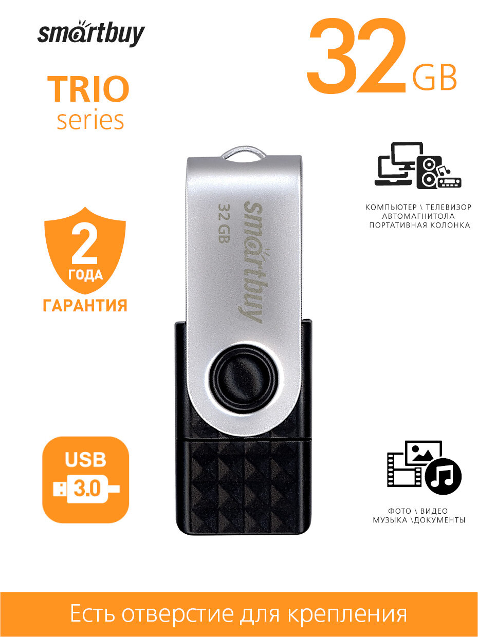 Флешка SmartBuy Trio 32 ГБ, 1 шт., серебристо-черный