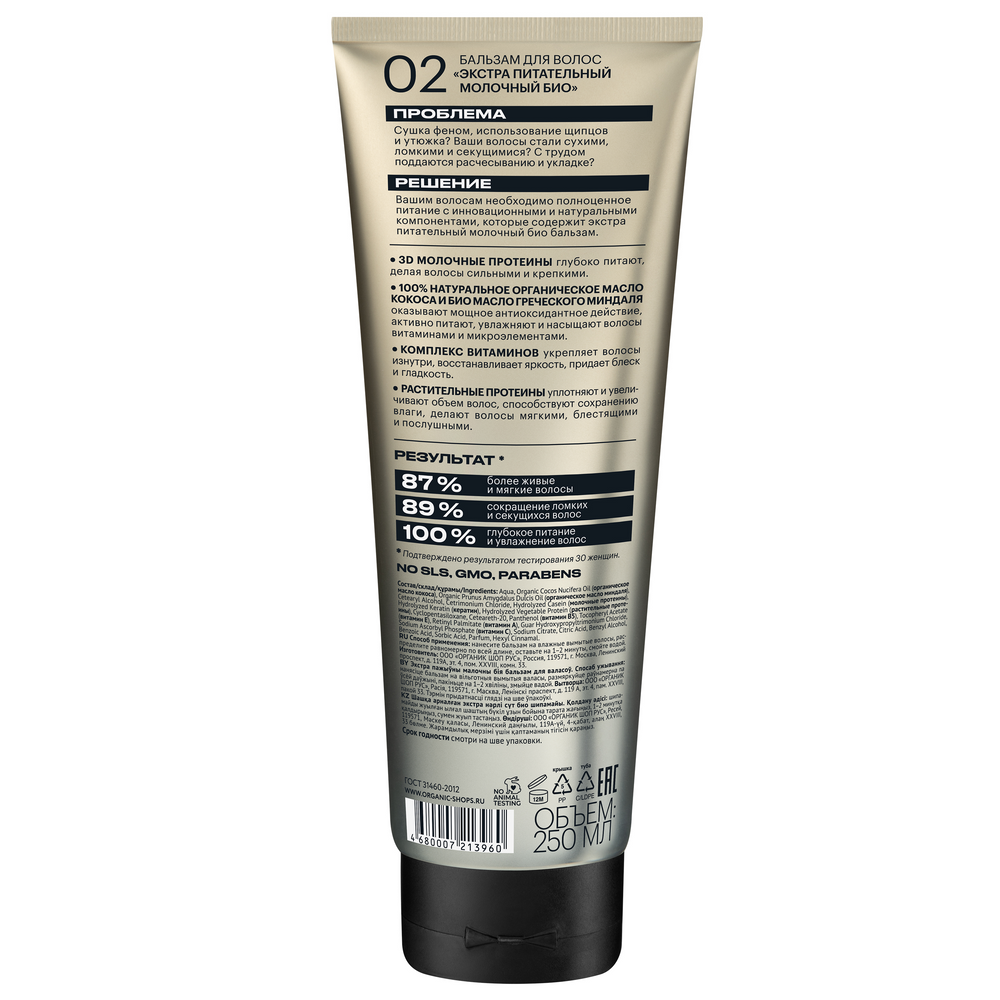 Organic Shop Naturally Professional Био-бальзам для волос Экстра питательный Молочный 250 мл