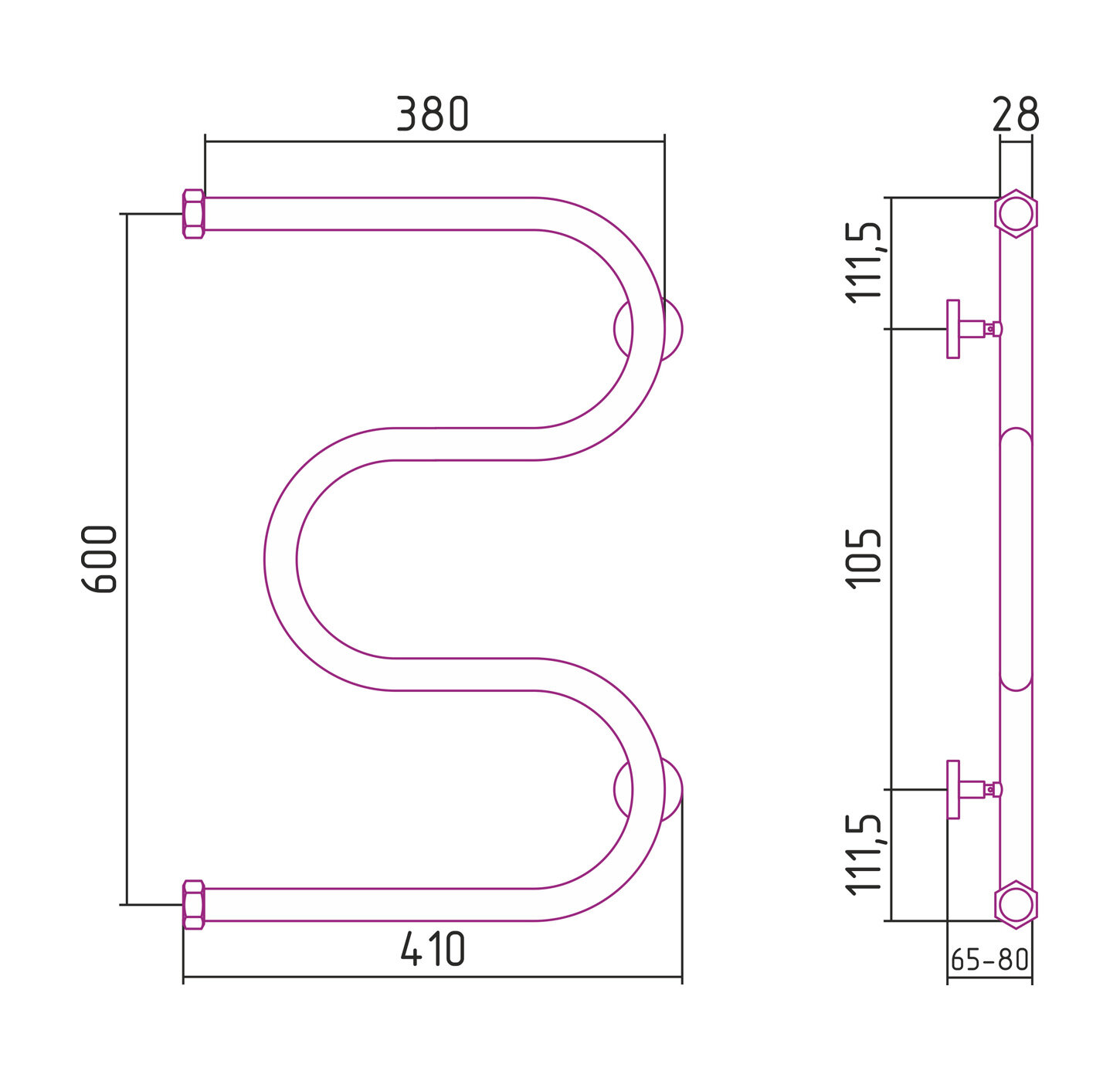 Полотенцесушитель водяной 600x400 Сунержа М-образный 00-0007-6040