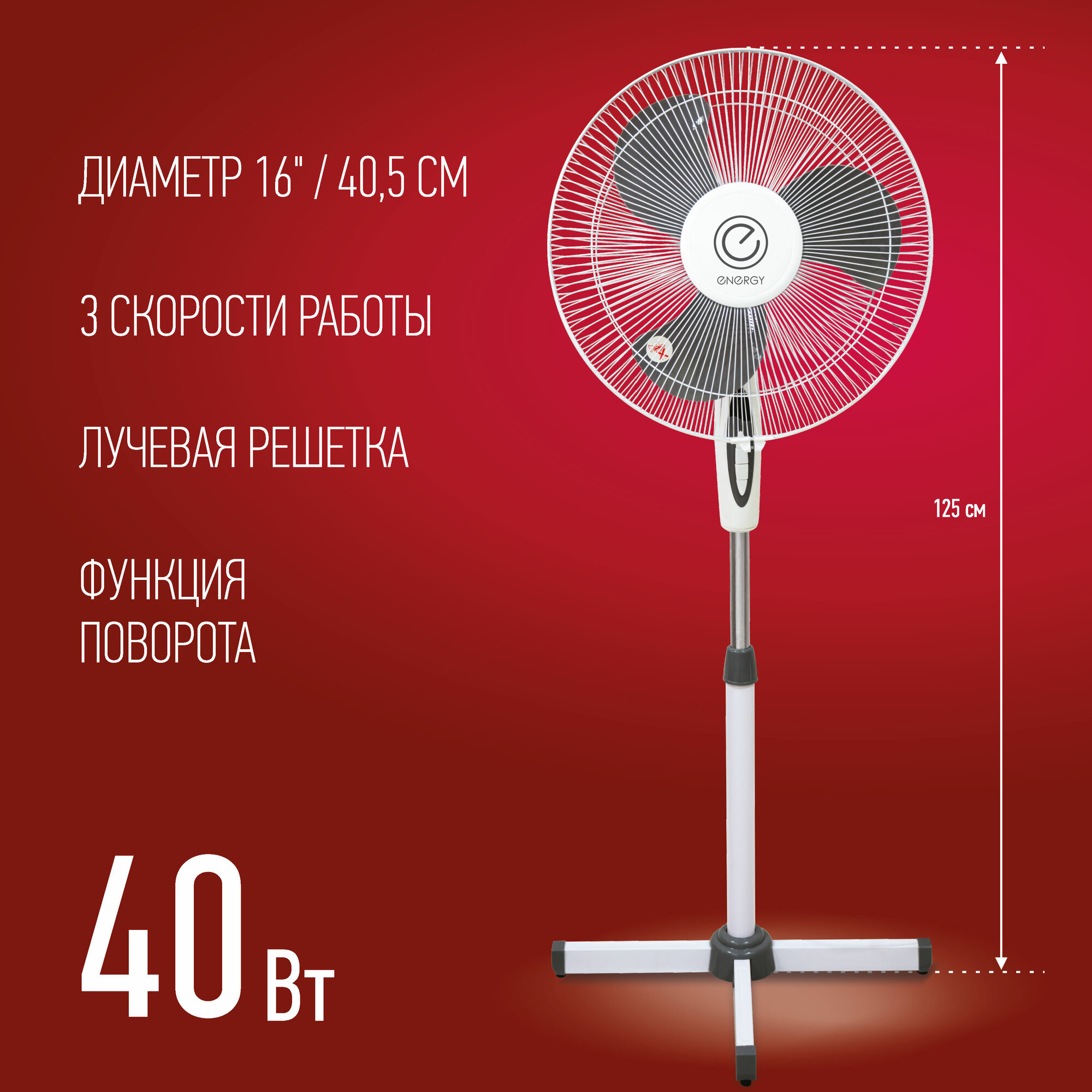 Вентилятор напольный Energy EN-1660 диам.40см,40 Вт,3 скорости, белый (1 шт. в коробке)