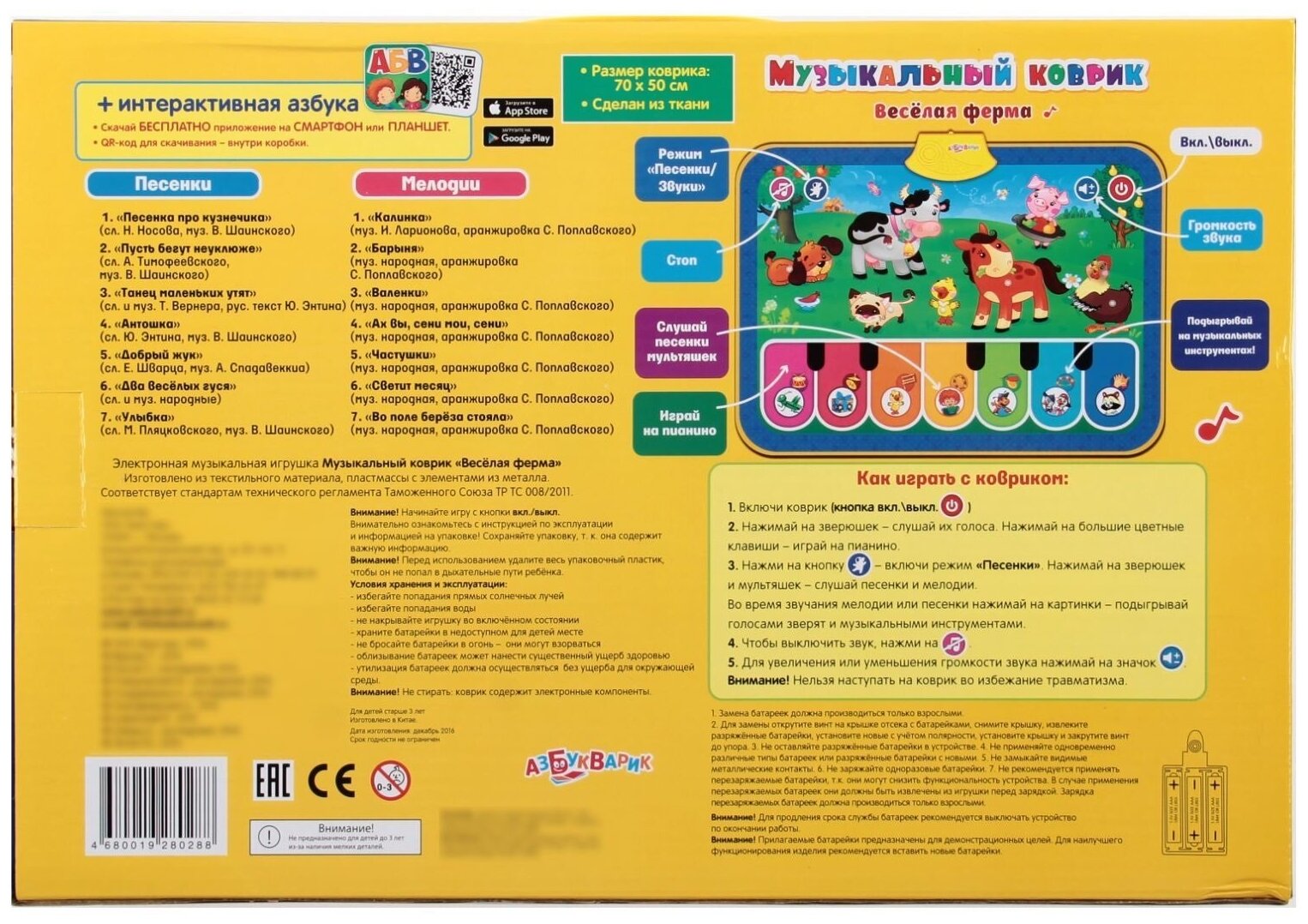 Музыкальный коврик Азбукварик Веселая ферма интересное:
