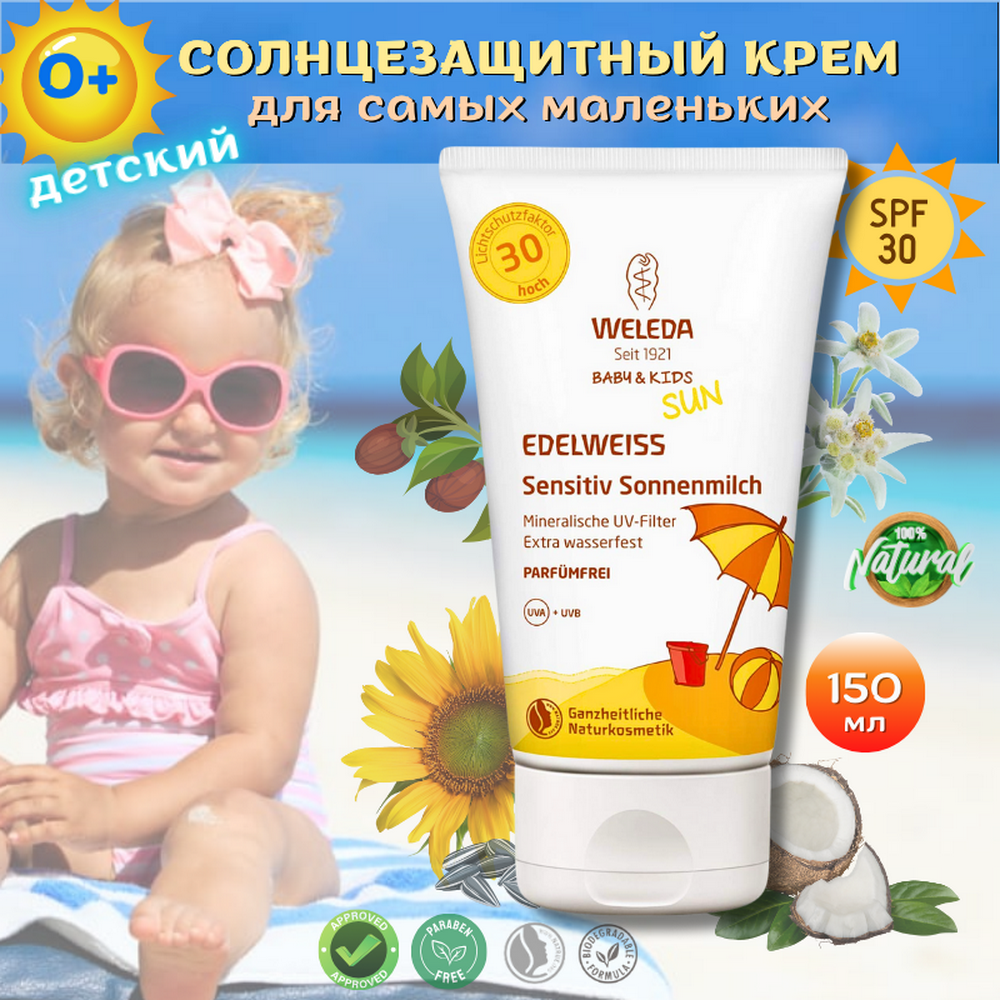 Weleda Натуральный солнцезащитный крем для младенцев и детей SPF30, 150 мл