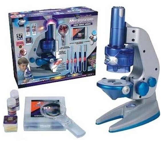Микроскоп с увеличением х1200, с аксессуарами. 57 предметов в подарочной коробке