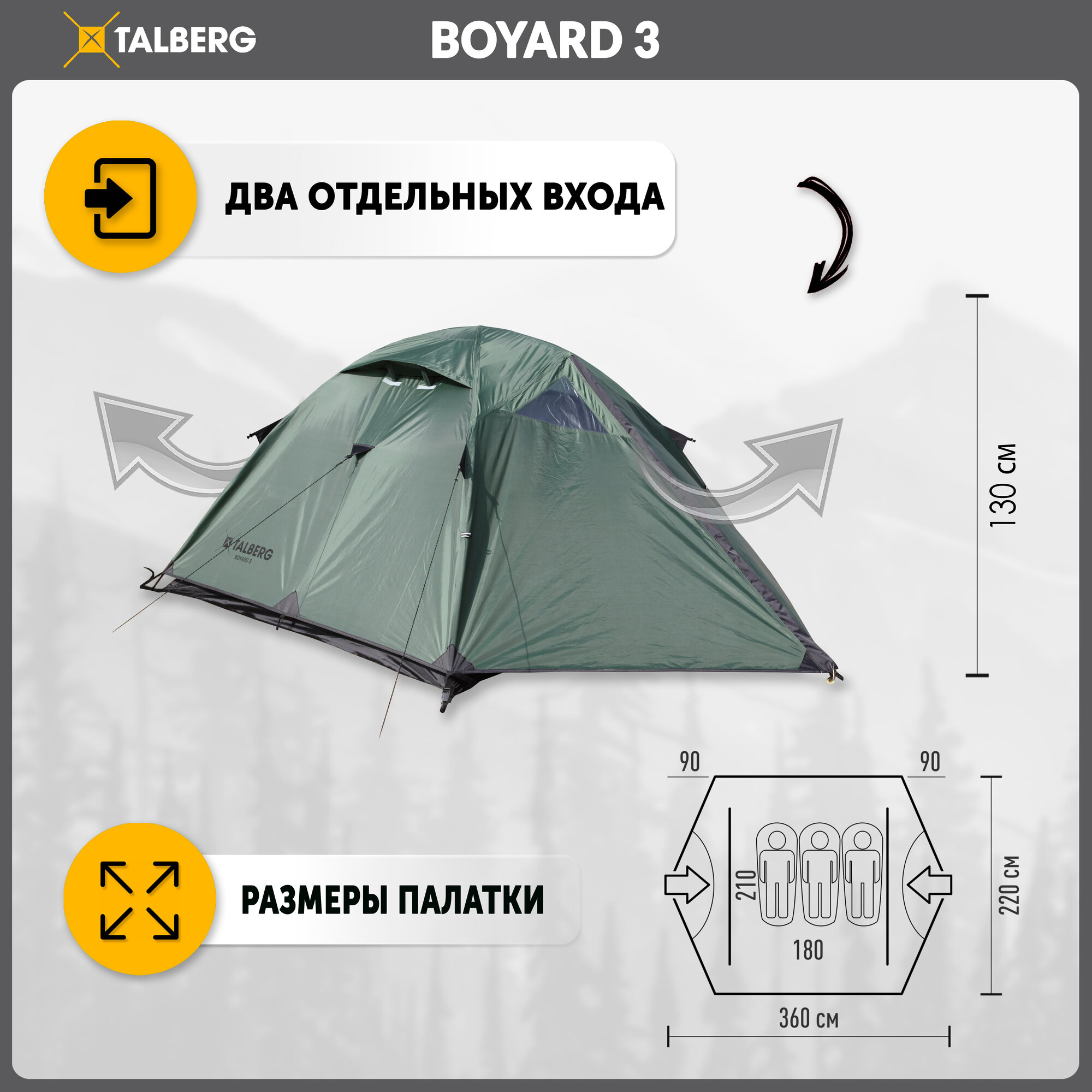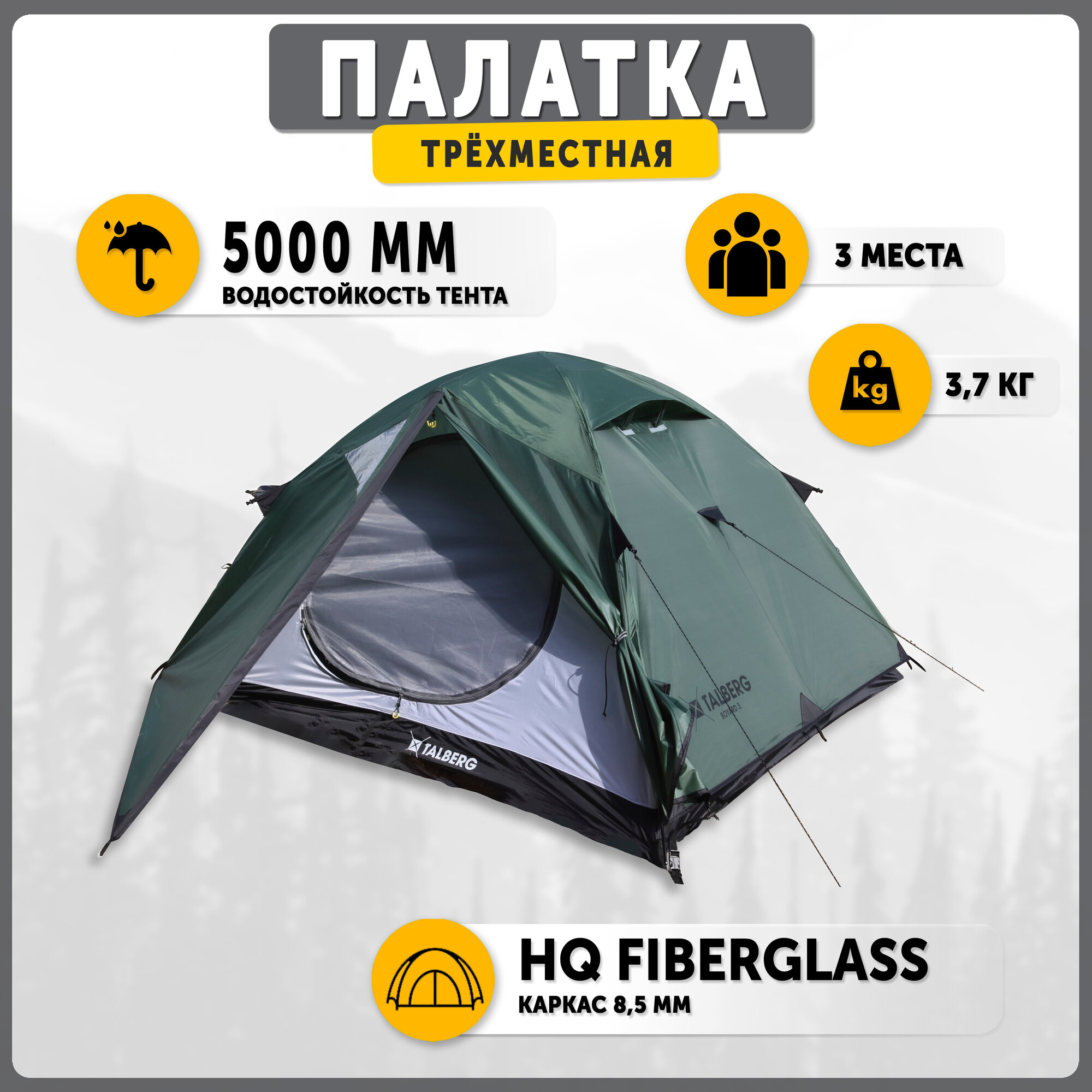 Палатка Talberg Boyard 3 размер 360х220х130 см , тент 5000 мм