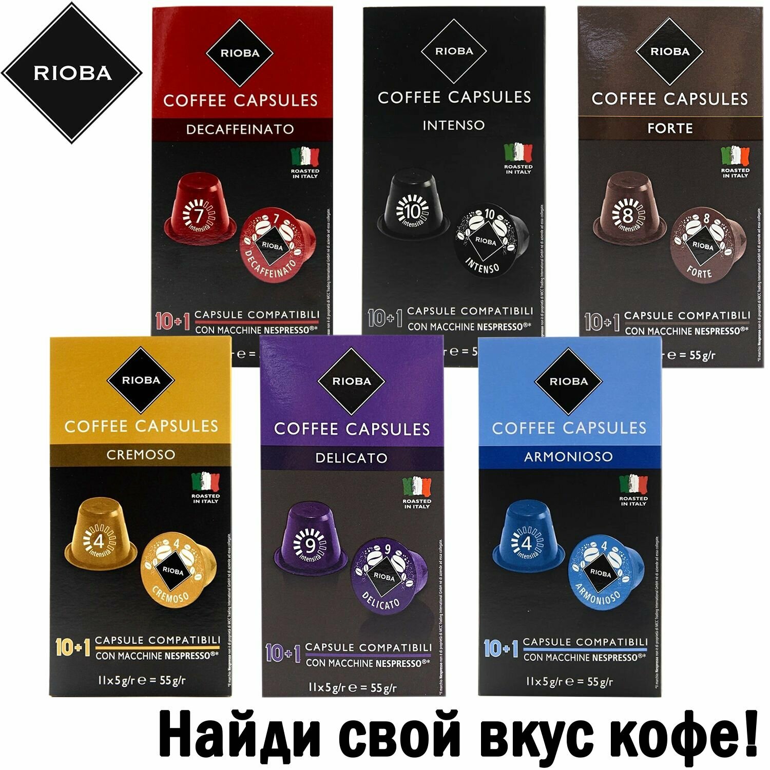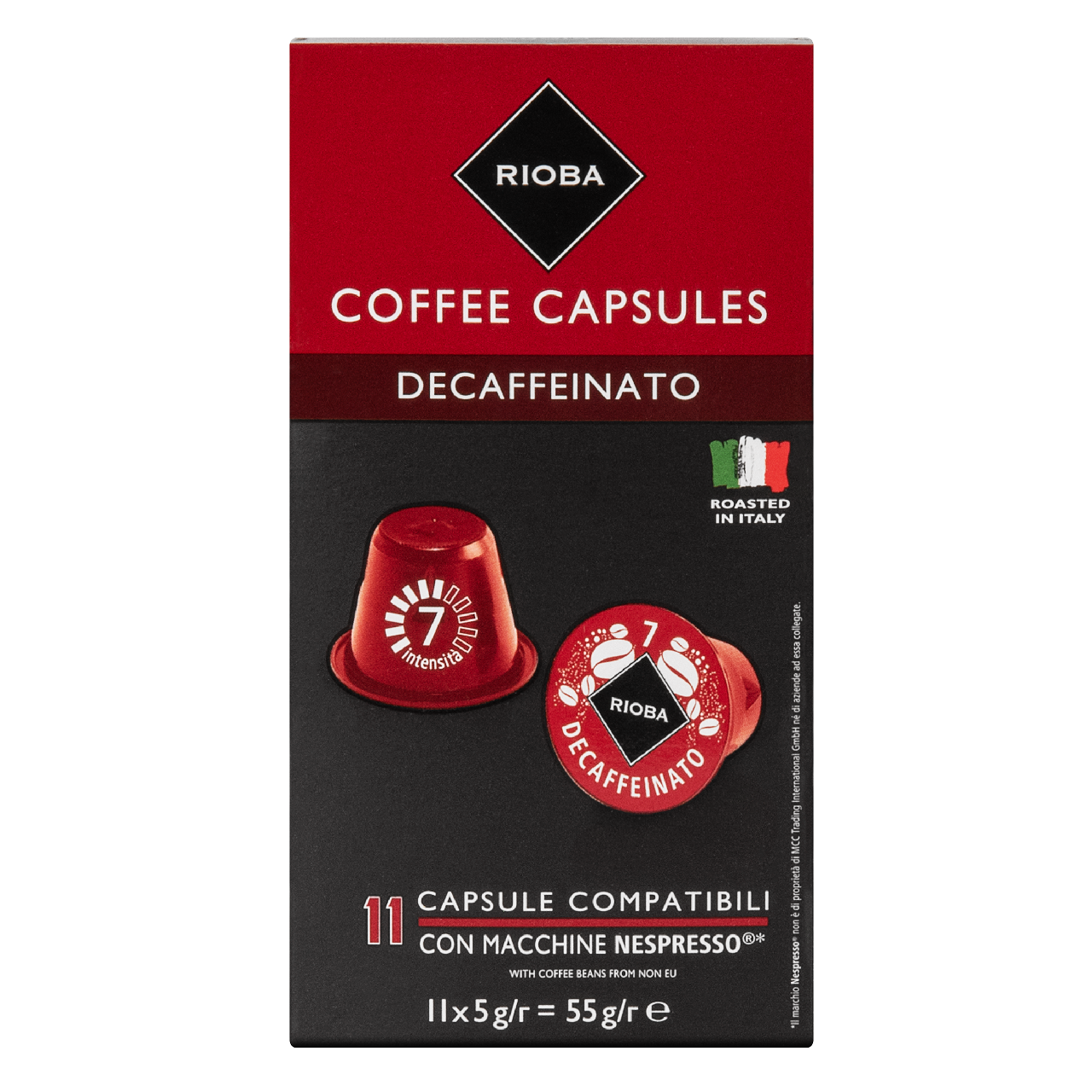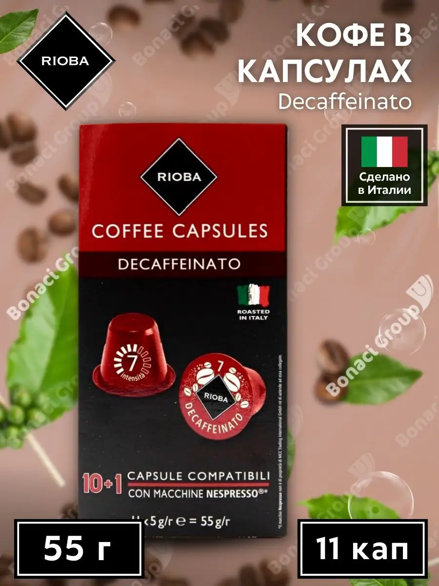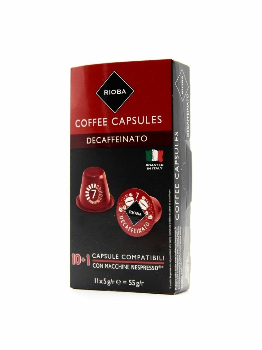 Купить Кофе в капсулах RIOBA / Decaffeinato / Средняя обжарка / Капсулы для Nespresso / Кофе Риоба для Неспрессо / Italy / 11шт