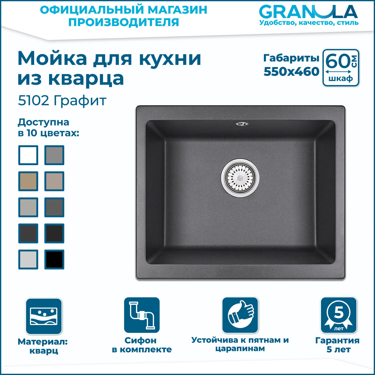 Ниже Вы можете прочитать отзывы на Мойка для кухни Granula 5551, серая (графит), подстольная, прямоугольная, кварцевая, раковина для кухни, ознакомится с подробными характеристиками, посмотреть интересные обзоры и фотографии на Мойка для кухни Granula 5551, серая (графит), подстольная, прямоугольная, кварцевая, раковина для кухни.