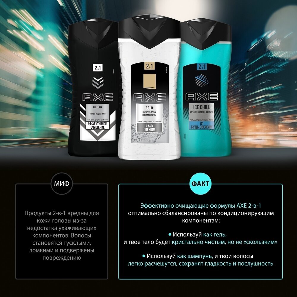 AXE ANTI HANGOVER 2в1 гель для душа и шампунь с пребиотиками и увлажняющими ингредиентами 610 мл