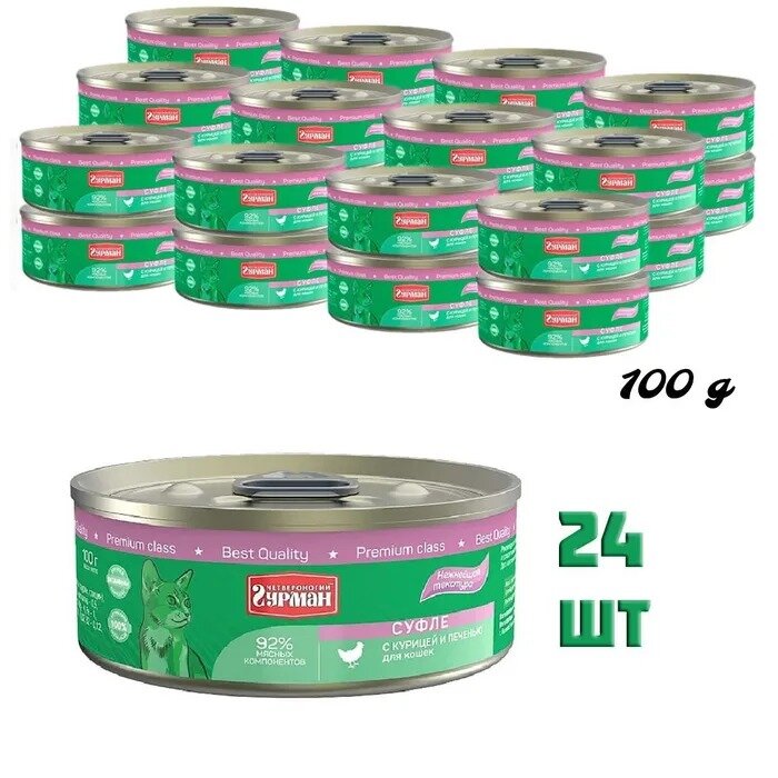 Четвероногий Гурман консервы для кошек Суфле с Телятиной и сердцем 100г (24 штуки)