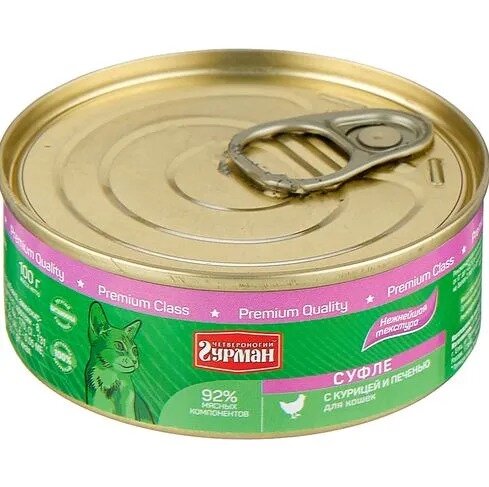 Корм консервированный для кошек Четвероногий Гурман, суфле с курицей и печенью, 100 гр, упаковка 12 шт
