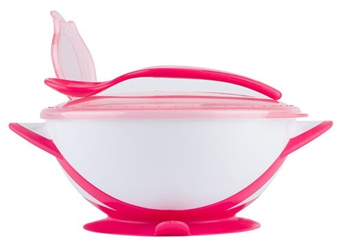Тарелочка с присоской, крышкой и ложечкой (розовый)