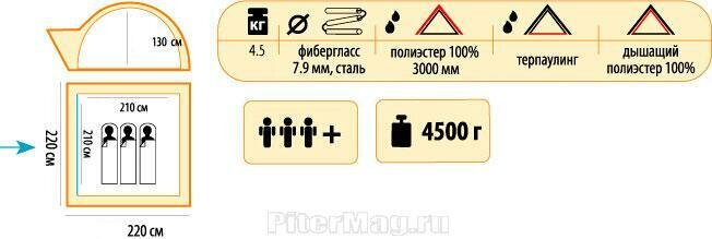 | Длина внешней палатки | 220 см |