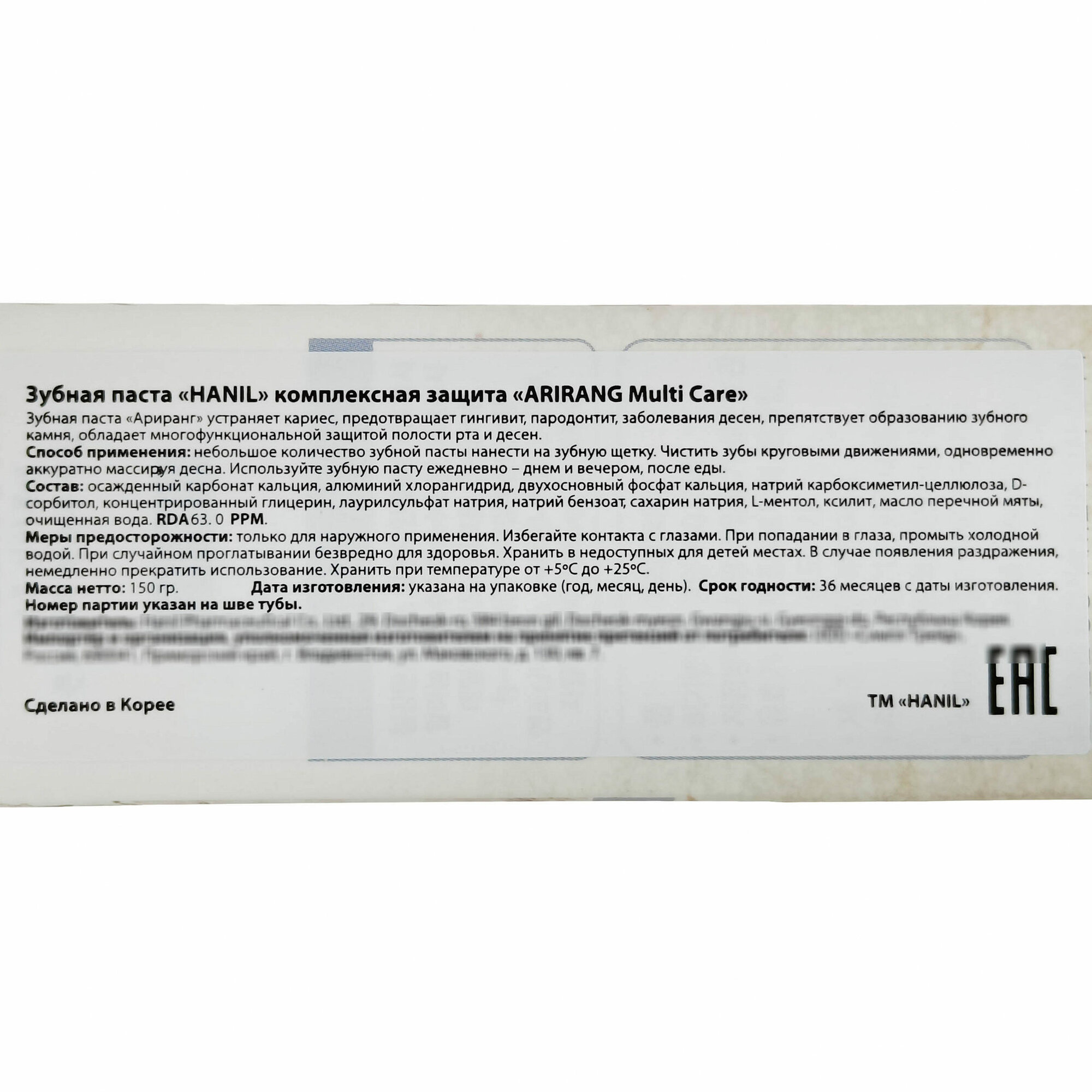 Зубная паста Hanil, Arirang Multi Care комплексная защита, 150 мл