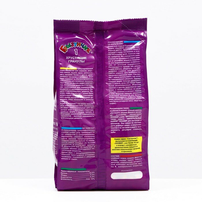 Корм-лакомство "Зоомир Грызунчик 1" для грызунов и кроликов, хрустящие гранулы, 150 г интересное: