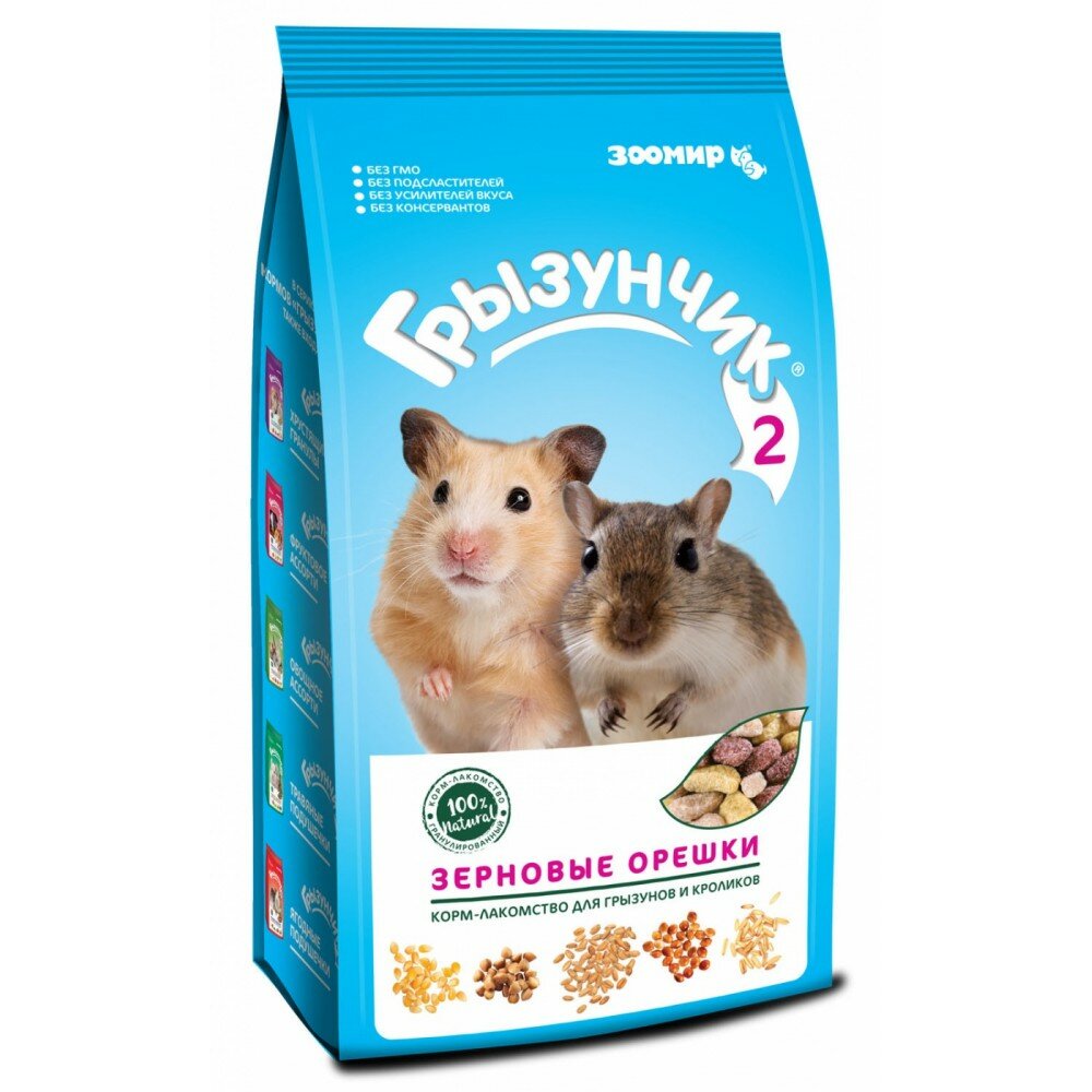 СохранитьЗоомир Корм-лакомство для грызунов и кроликов Грызунчик 2 Зерновые орешки 623 0,25 кг 35398 интересное: