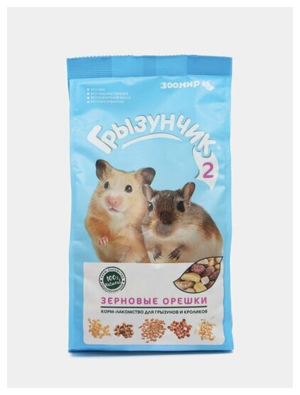 Зоомир, корм для грызунов и кроликов Грызунчик 2, зерновые орешки, 250гр, 3 шт/