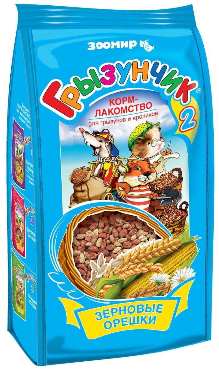 Зоомир, корм для грызунов и кроликов Грызунчик 2, зерновые орешки, 250гр, 3 шт/