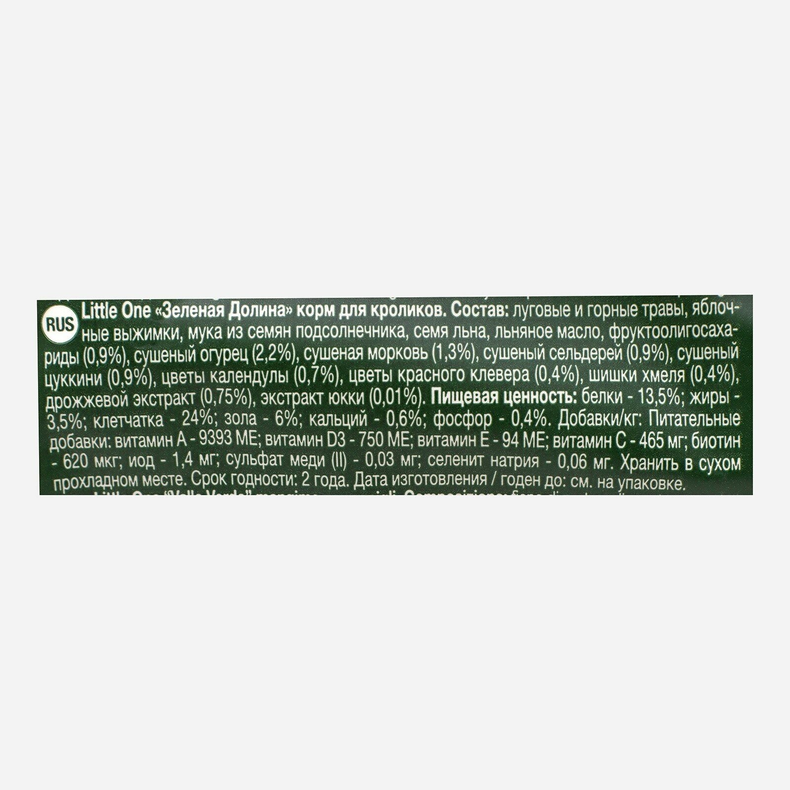 Little One корм для кроликов Зеленая долина 750 г