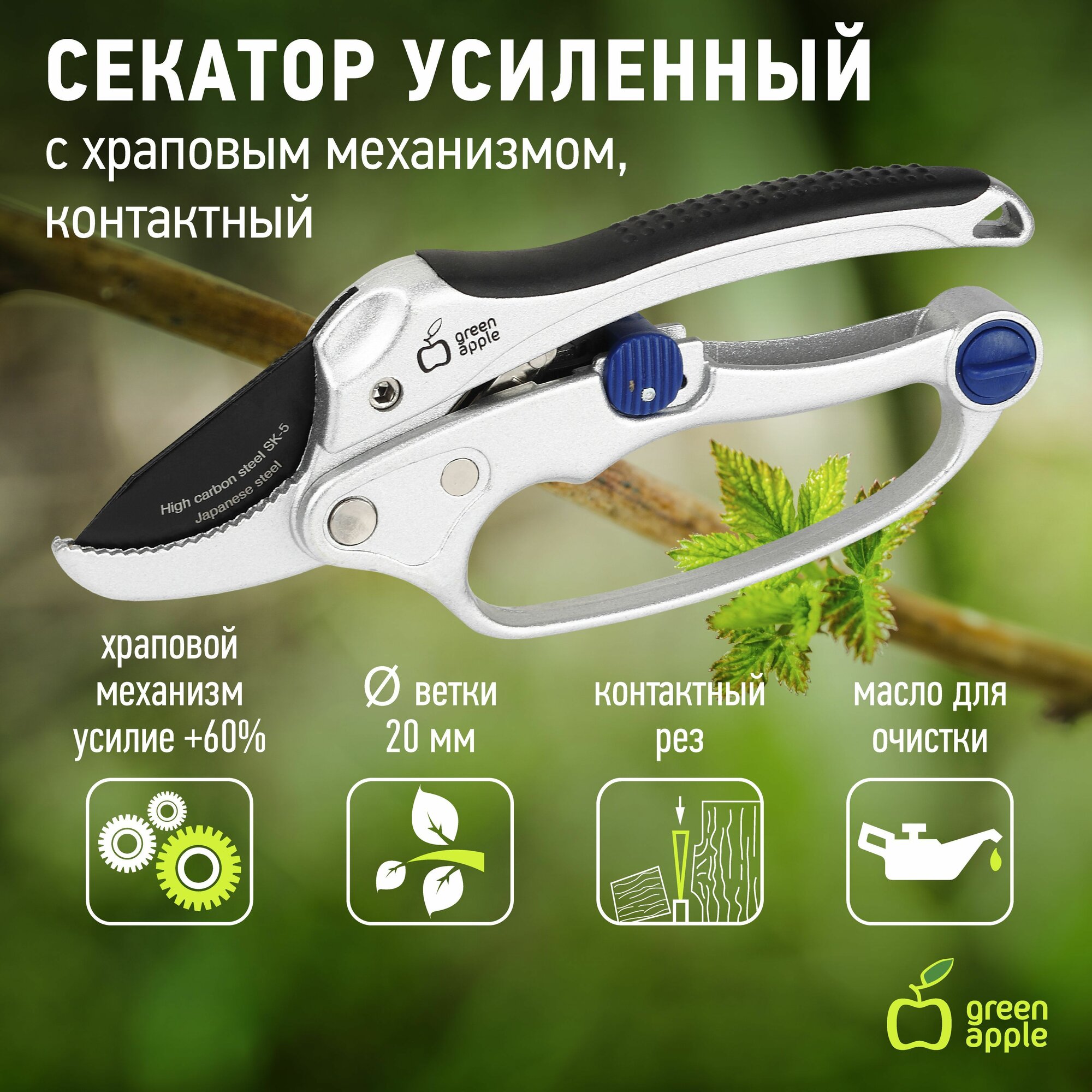 Green Apple GTRS60-003 GREEN APPLE Секатор усиленный c храповым механизмом, контактный