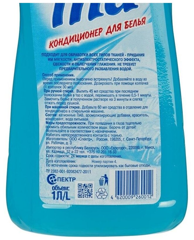 Кондиционер для белья Перина, морозная свежесть,1000 мл.
