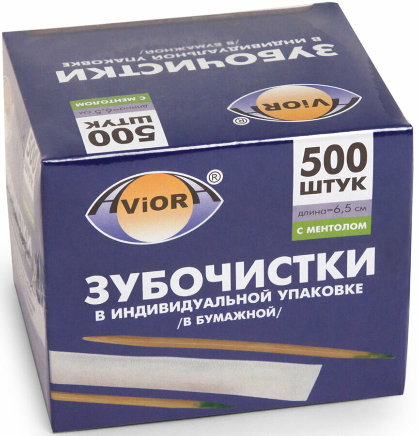 Aviora зубочистки Бамбуковые с ментолом в инд. упаковке (в бумаге), 500 шт. в уп.