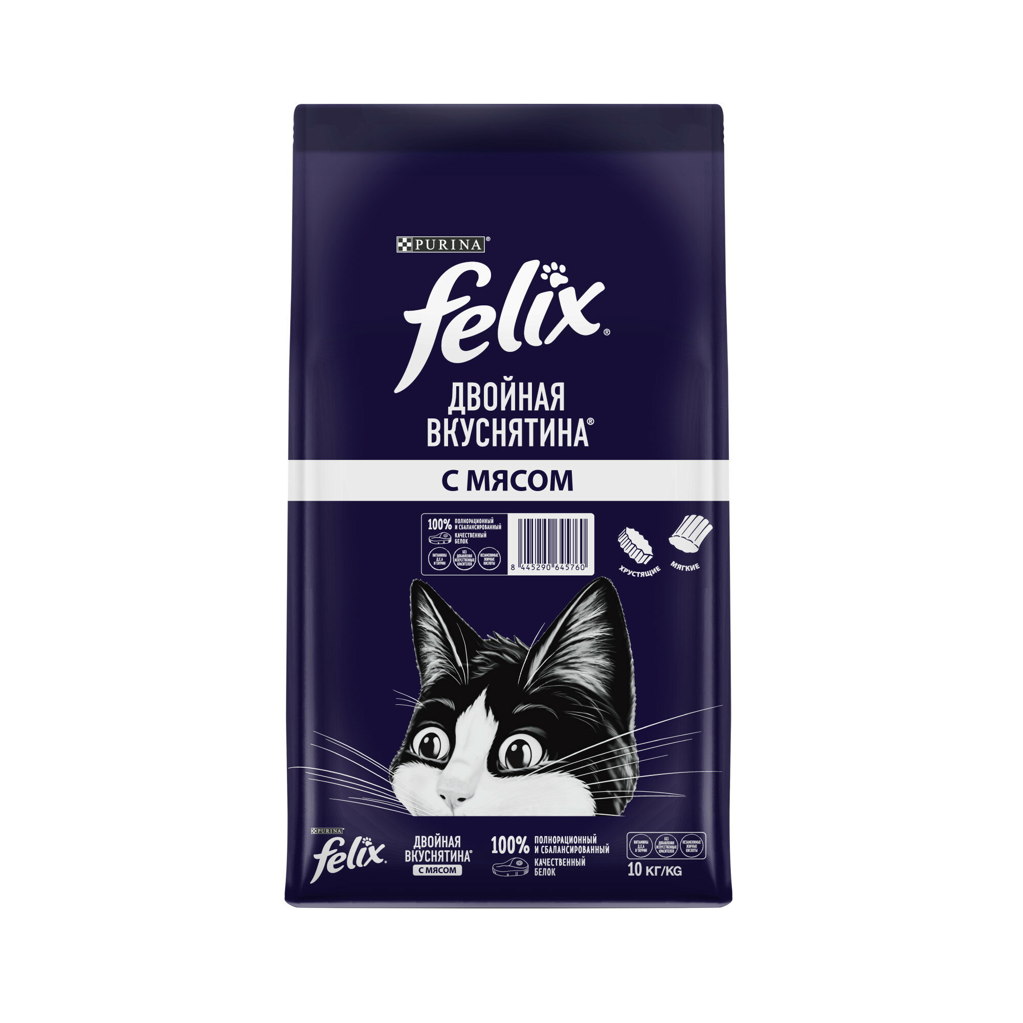 Сухой корм для кошек Felix Двойная Вкуснятина, мясо, 10кг