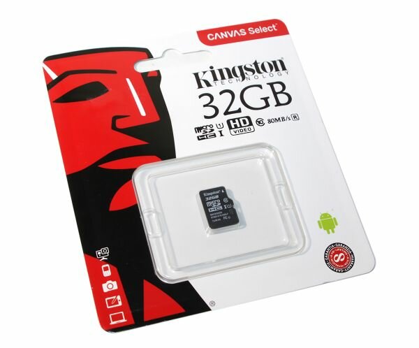 Карта памяти MicroSDHC 32 Гб Kingston Canvas Select (SDCS/32GB) Class 10, UHS Class 1, UHS-I