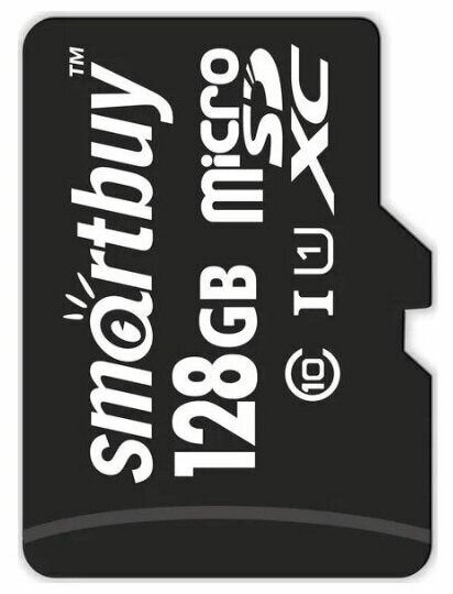 Карта памяти SmartBuy microSDXC 128 ГБ Class 10, UHS Class 1, R/W 90/25 МБ/с, 1 шт., черный