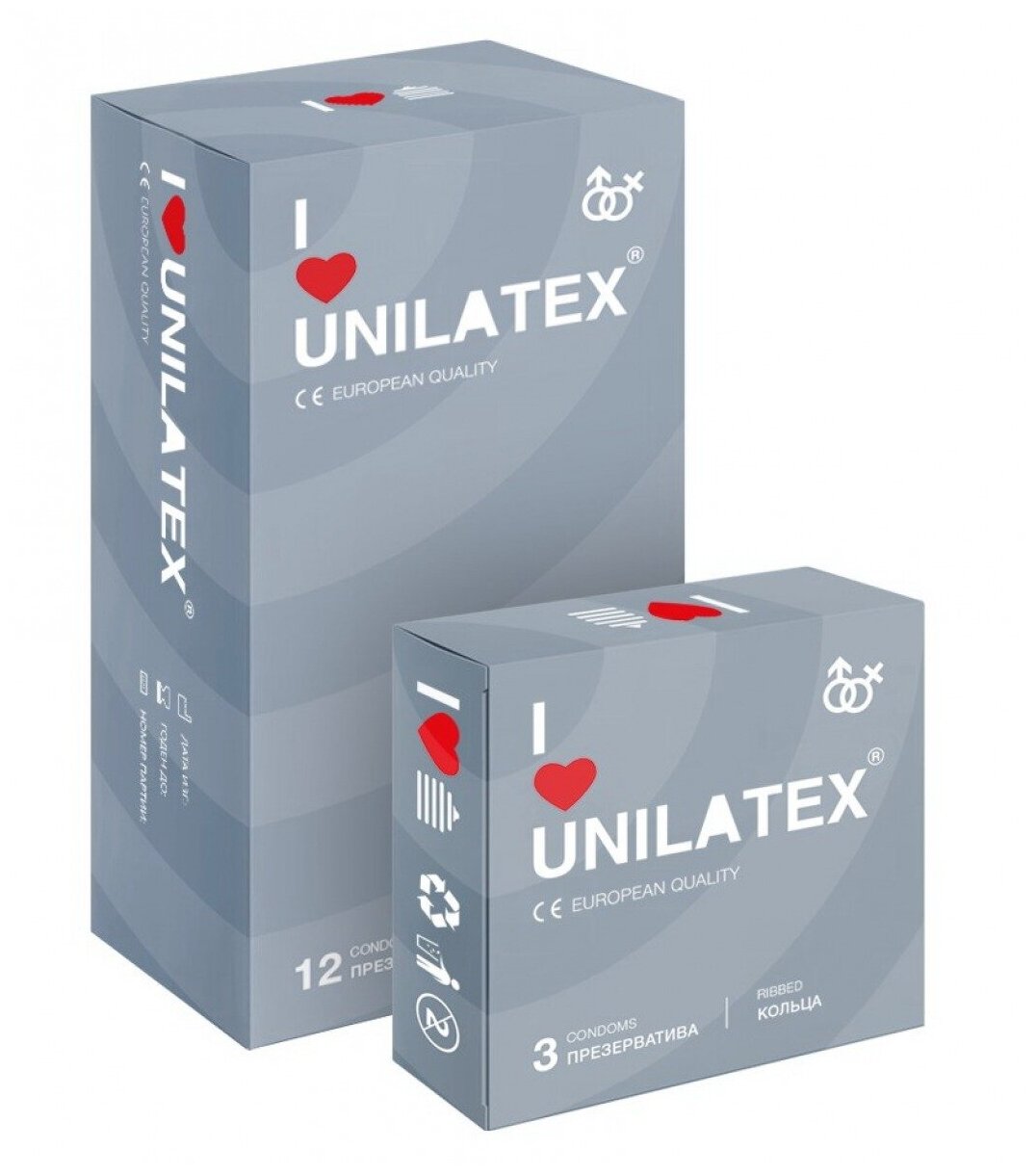 Unilatex / Презервативы Unilatex Ribbed 12+3 шт., Поверхность с кольцами.