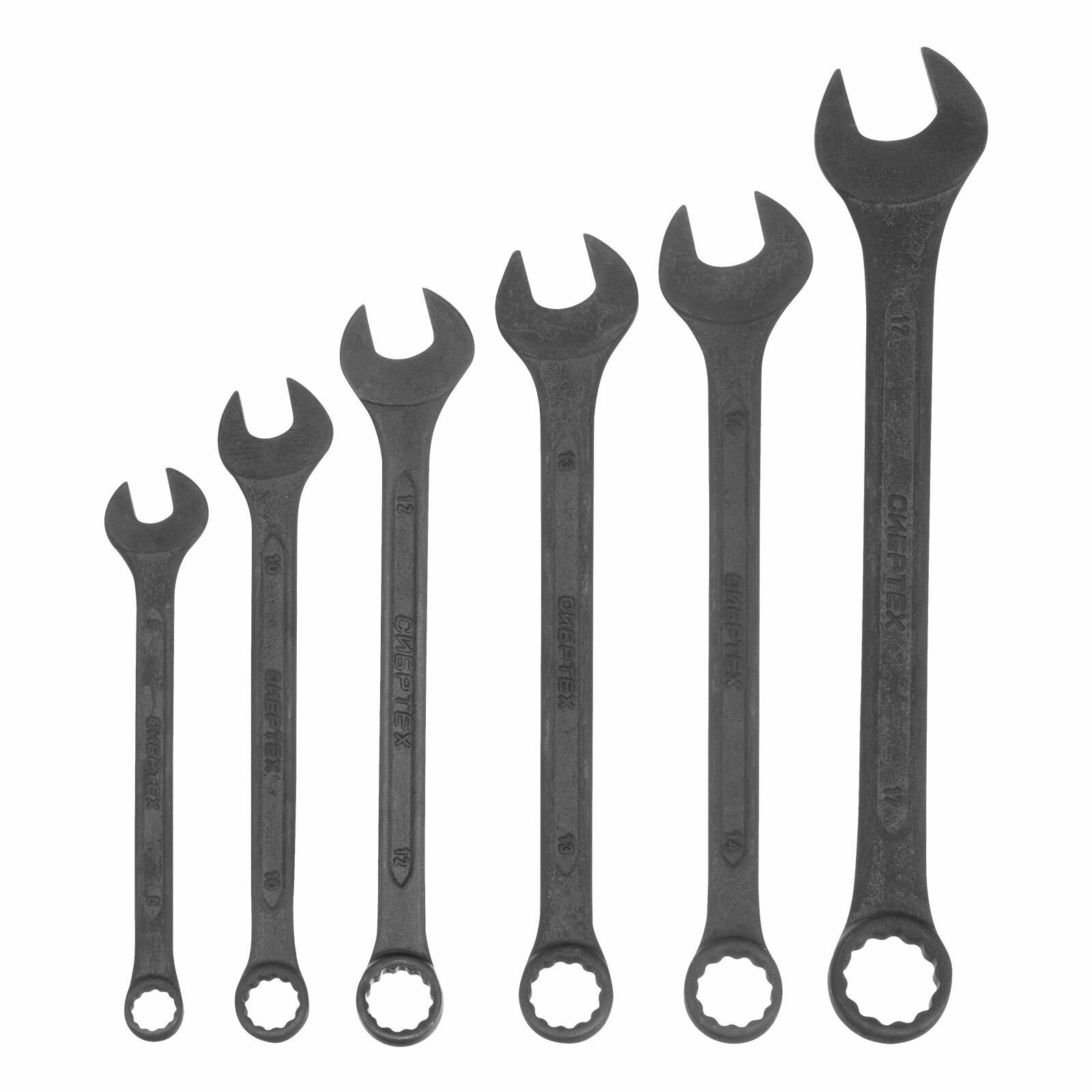 Набор ключей комбинированных, 8-17 мм, 6 шт, CrV, фосфатированные, ГОСТ 16983 Сибртех