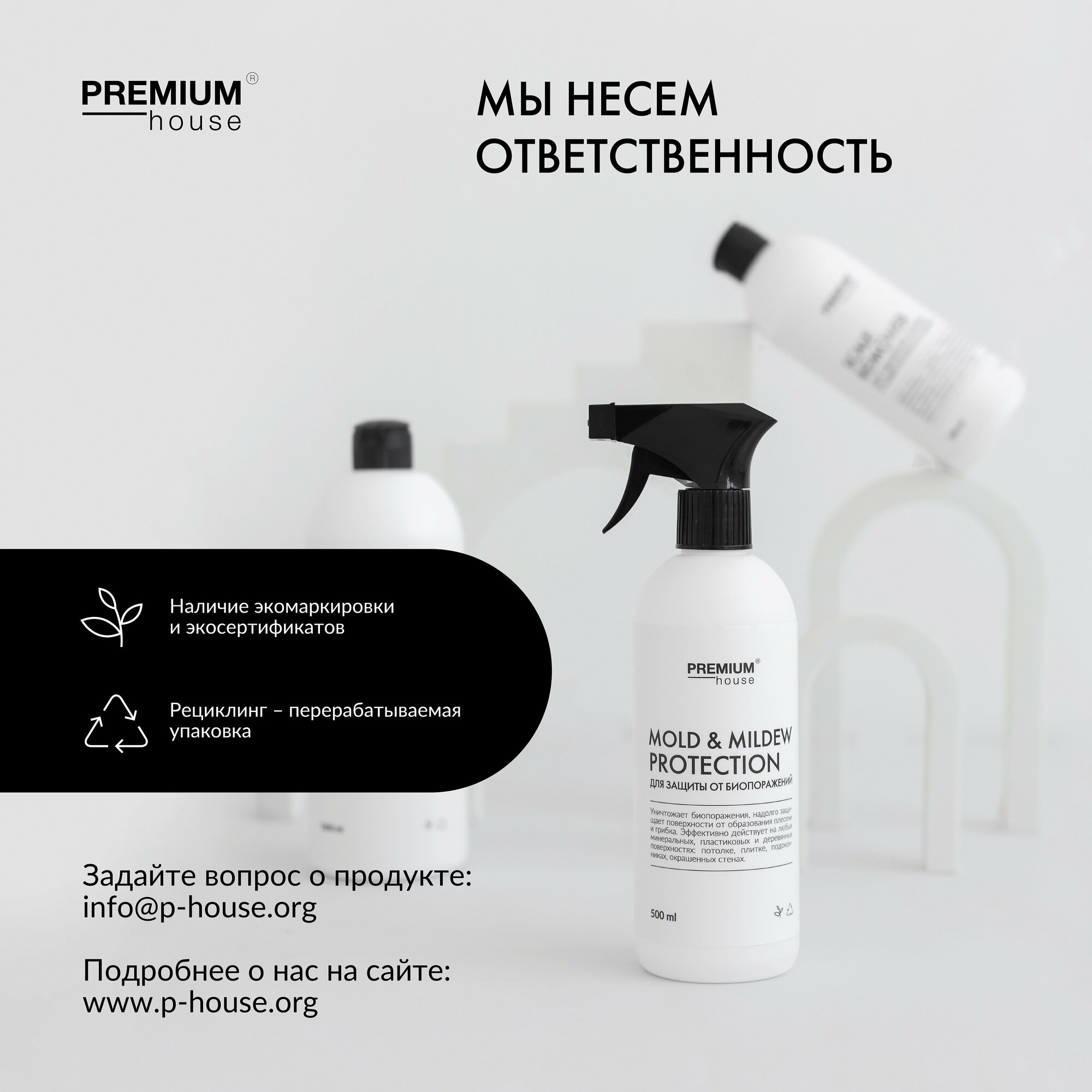 Высокоактивное средство для удаления плесени и биопоражений (Спрей 0,5 л) Premium House интересное: