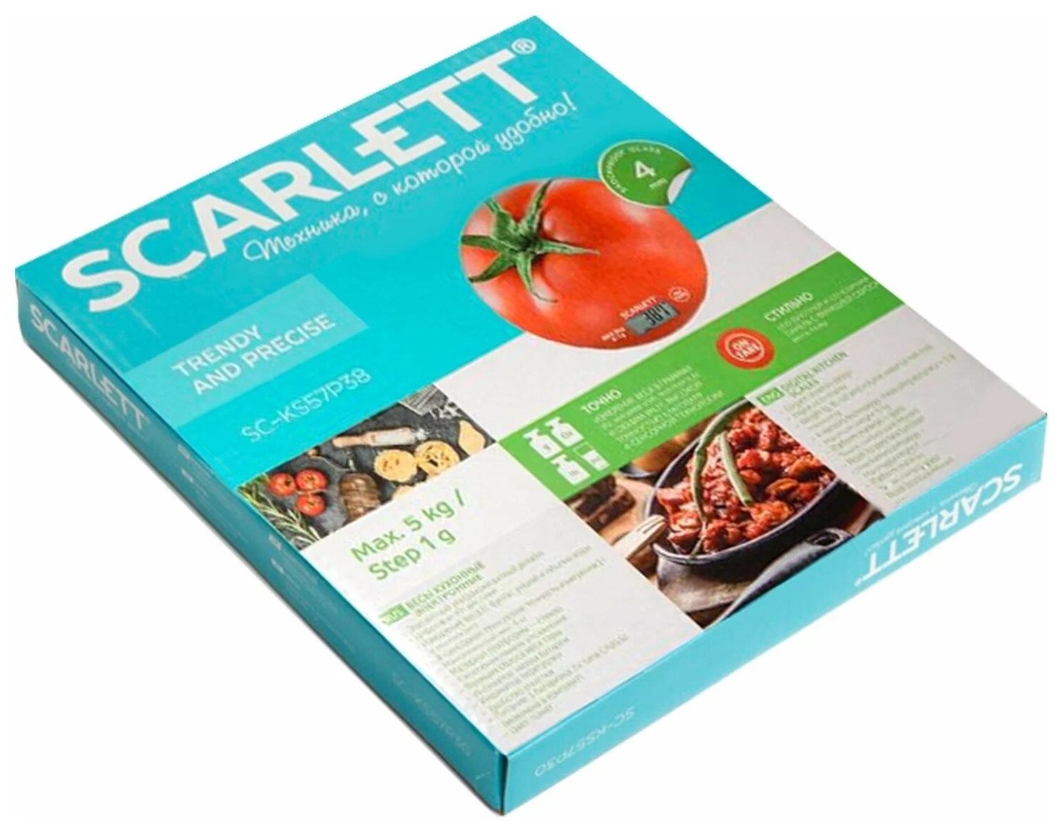 Кухонные весы Scarlett SC-KS57P38, стекло, пластик, 5кг макс ( Артикул 329798 )