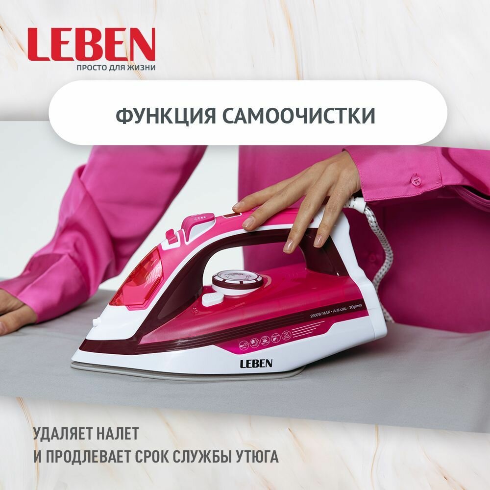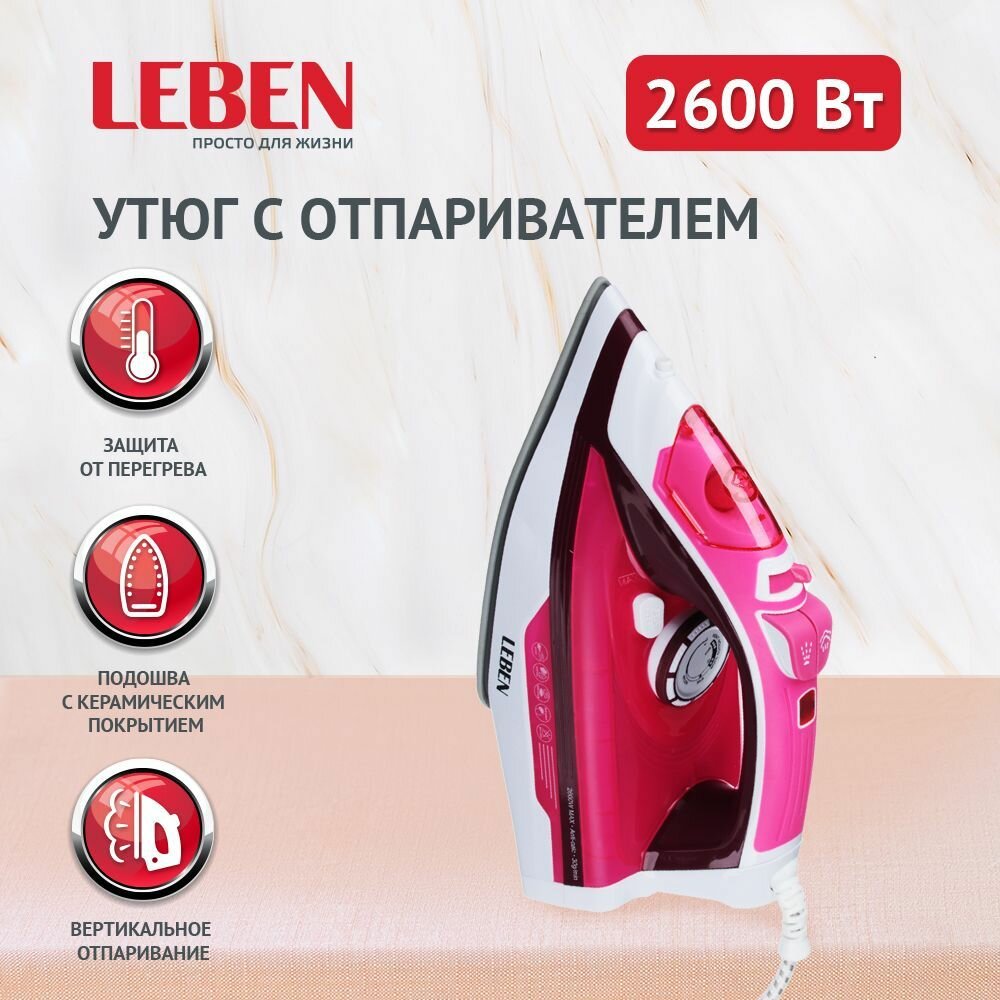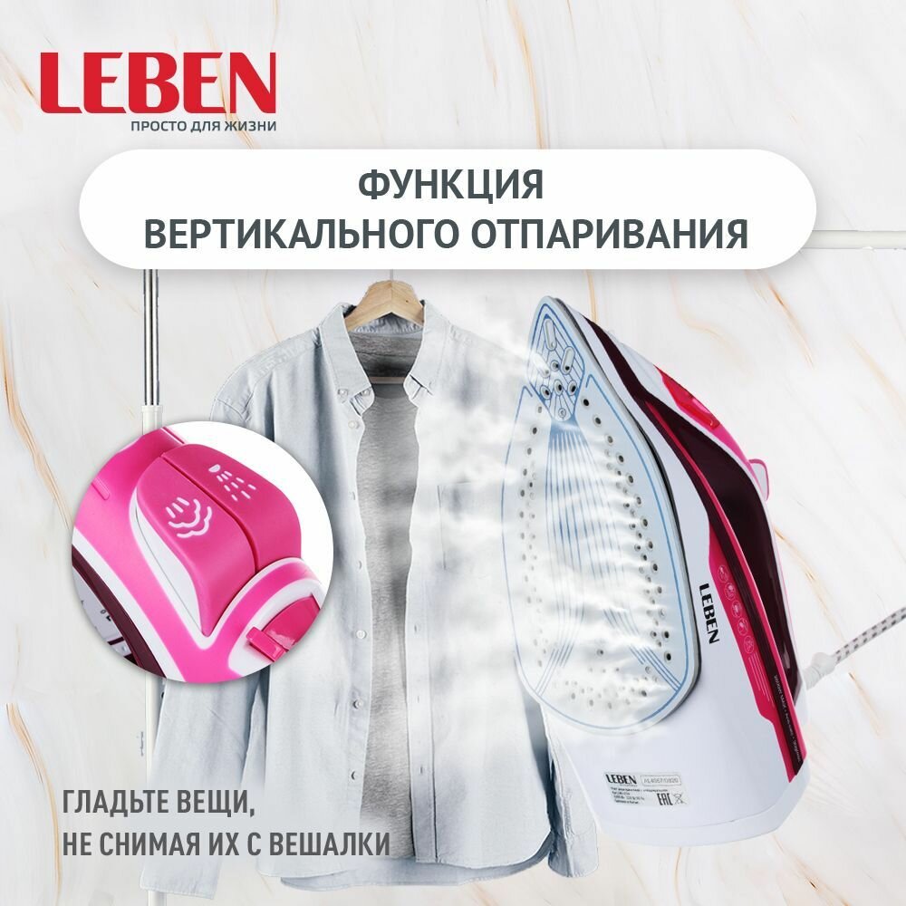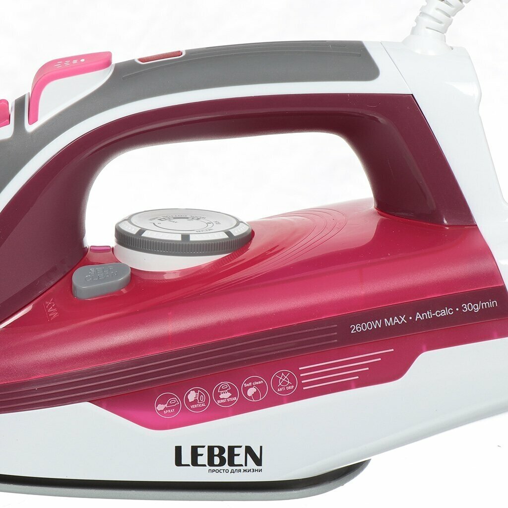 Утюг LEBEN 2600 Вт, подошва керамика, вертикальное отпаривание, самоочистка, розовый 249-014