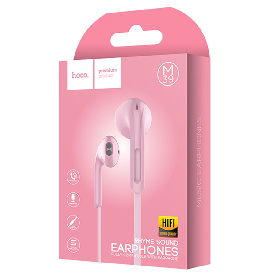 Наушники M39 Rhyme sound earphones with microphone, hoco, розовые