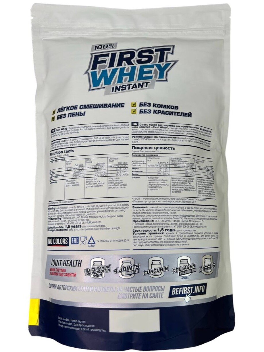 Купить Сывороточный протеин Be First First Whey Instant (сывороточный протеин) 900 г, Натуральный