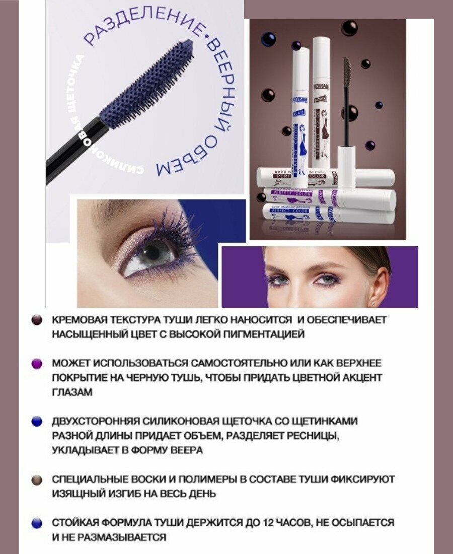 Люкс визаж Тушь Perfect Color веер пышных ресниц BLUE син