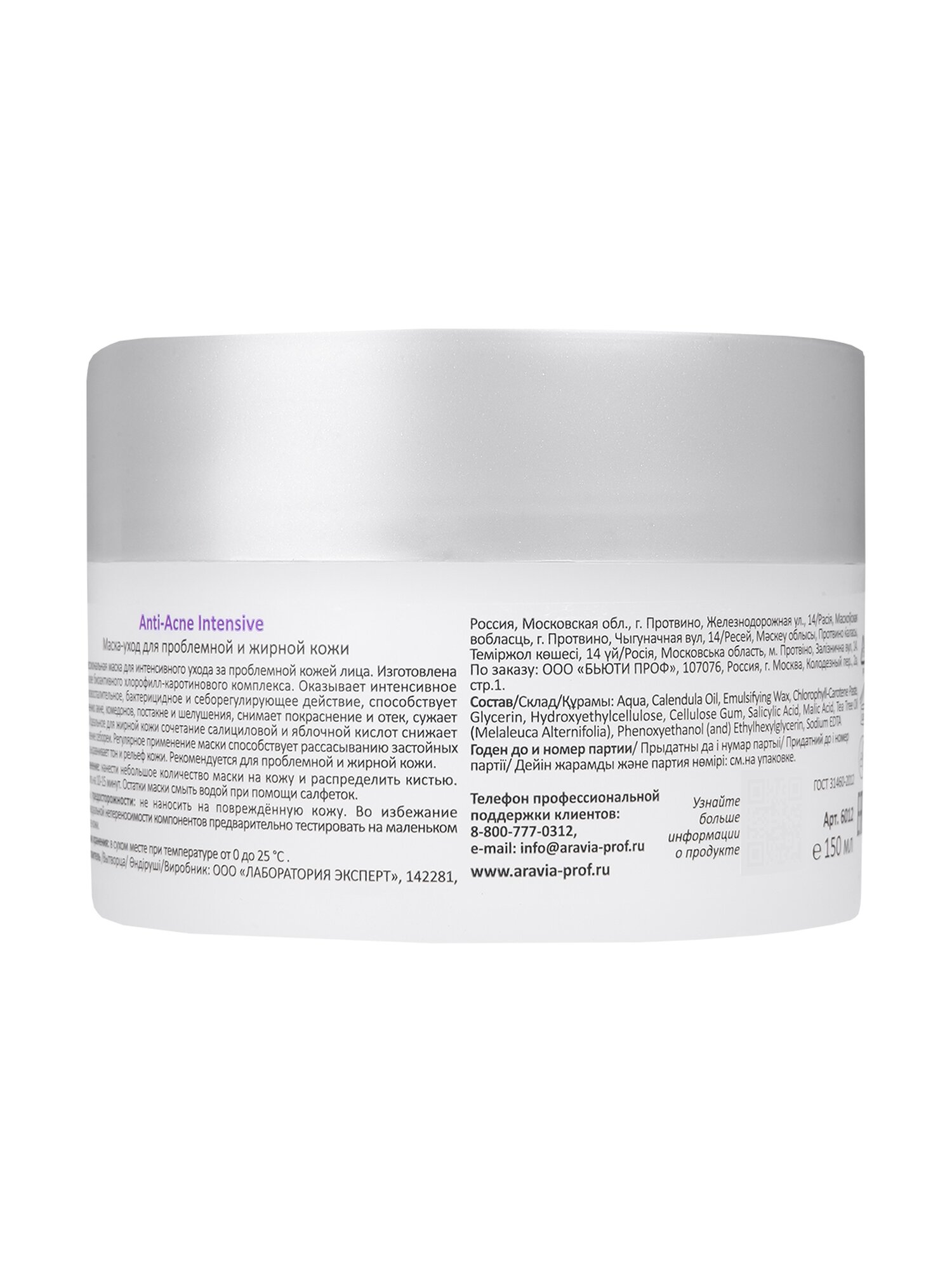 Маска-уход для проблемной и жирной кожи лица ARAVIA PROFESSIONAL Anti-Acne Intensive, 150 мл