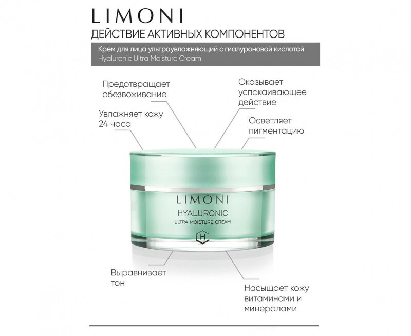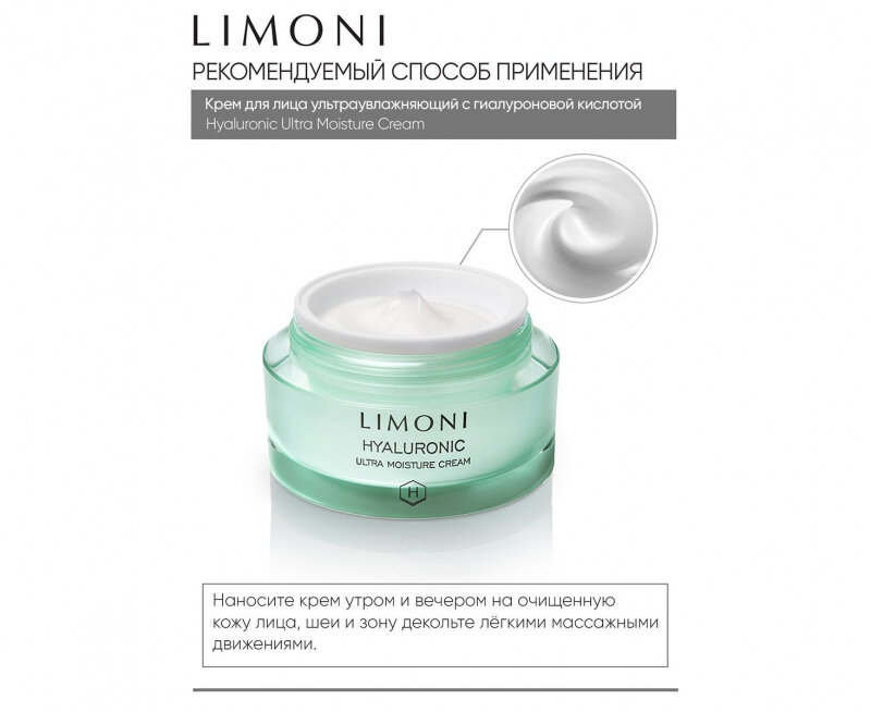 LIMONI Крем для лица Hyaluronic Ultra Moisture Cream ультраувлажняющий с гиалуроновой кислотой, 50 мл