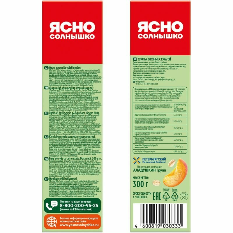 Ясно cолнышко Хлопья овсяные с курагой, 2 шт по 300 г
