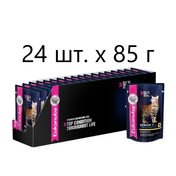 Eukanuba Senior 7+ Top Condition влажный рацион из курицы в соусе для взрослых кошек старше 7 лет, 24шт. х 0,085кг