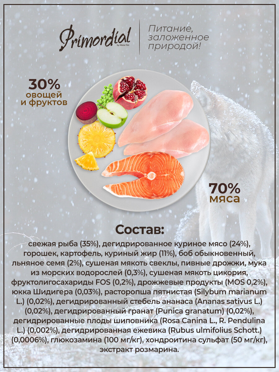 Сухой корм для щенков беззерновой курица рыба, PRIMORDIAL, 2кг