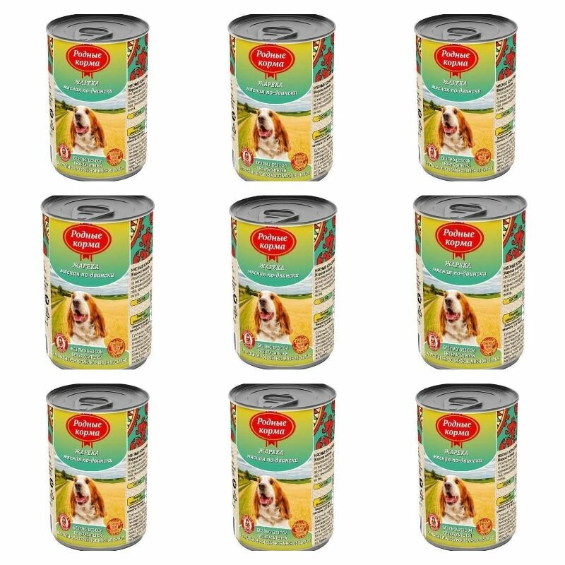 Корм консервированный Родные Корма, для собак, жареха мясная по-двински, 410 г (Упаковка 9шт)