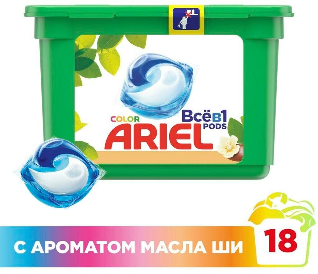 Ariel капсулы PODs Всё-в-1 Аромат Масла Ши, контейнер, 18 шт.